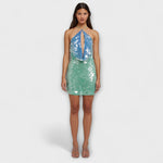 Ostavite upečatljiv utisak s našim zapanjujućim minidresovima, dizajniranim da privuku poglede na svakoj svečanoj prilici. Sa svjetlucavim gradijentnim efektom od plave do zelene boje, ovaj dres je idealan za one koji vole da sjaje.